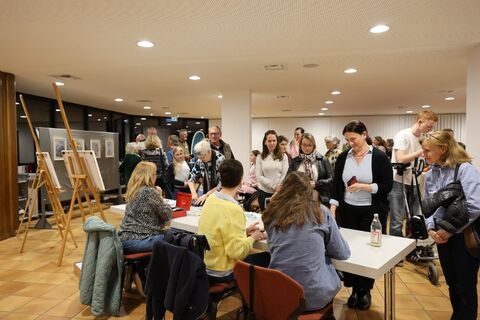 Der anschließende Buchverkauf wurde rege genutzt, ebenso die Möglichkeit, sich das Buch von den beiden Künstlerinnen signieren zu lassen. Die Begleitausstellung mit den Illustrationen von Siri Dietz stieß auf ein begeistertes Echo. Beim abschließenden Umtrunk nutzten die über 60 Gäste die Gelegenheit, miteinander ins Gespräch zu kommen – die Veranstaltung hatte für reichlich Gesprächsstoff gesorgt.